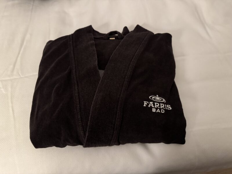 Farris Badのスパは、水着着用の男女混浴スタイル 。移動はバスローブとサンダルで、サウナ内では肌が直接木に触れないよう、足元までバスタオルを敷くのがマナーです 。